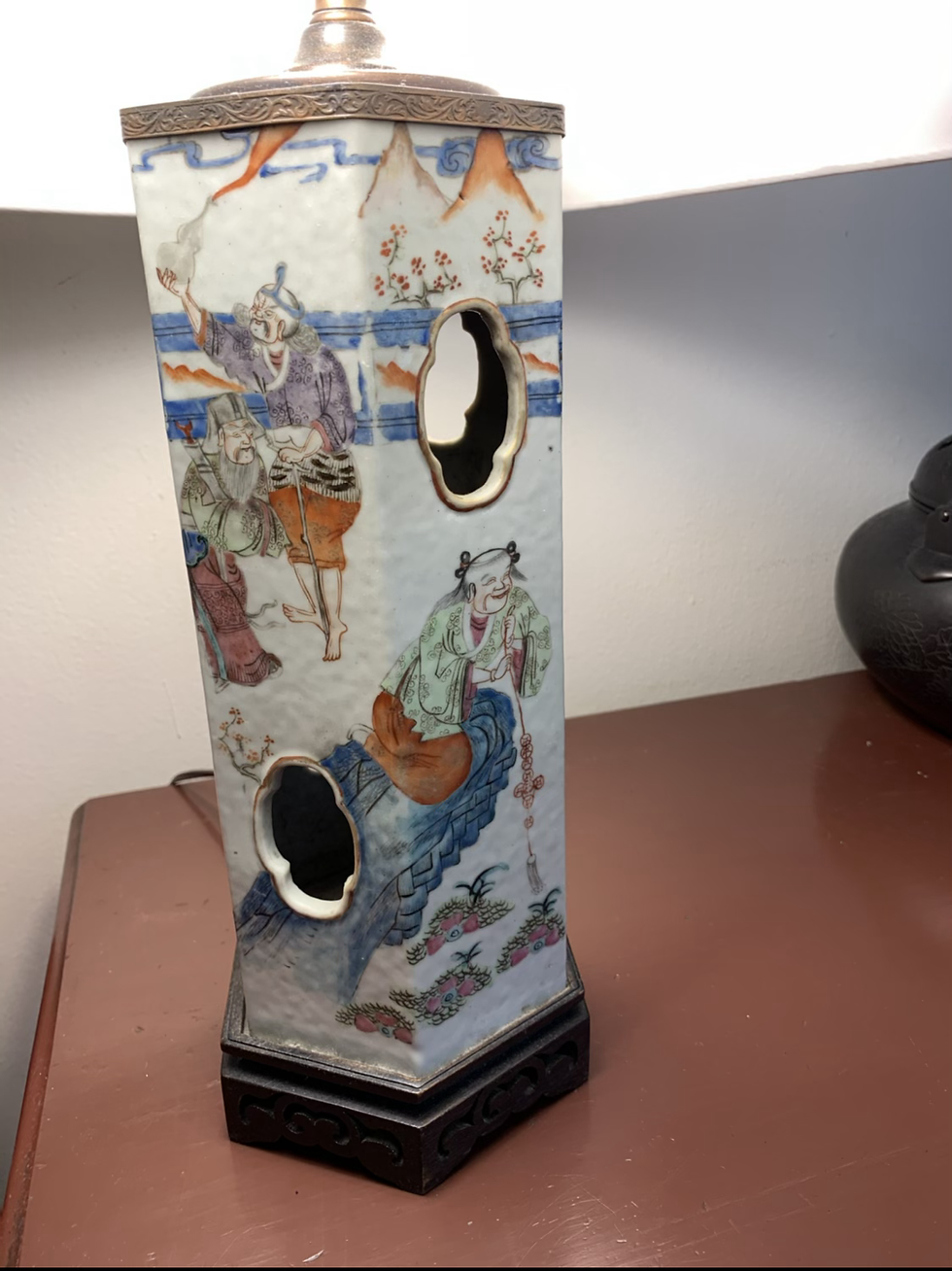 Pair of Chinese Export Style Gilt Metal Mounted Porcelain Lamps Modern Each of